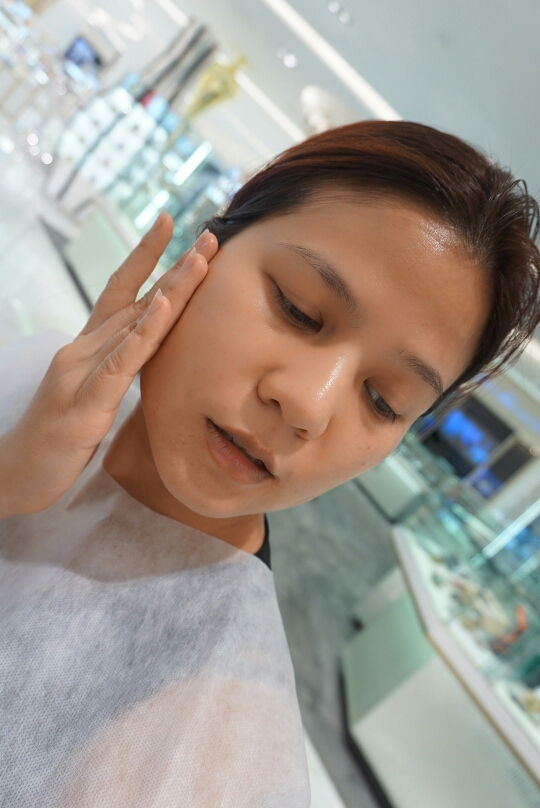 เหยาะบนฝ่ามือแล้วแตะๆๆ ให้ทั่วใบหน้า