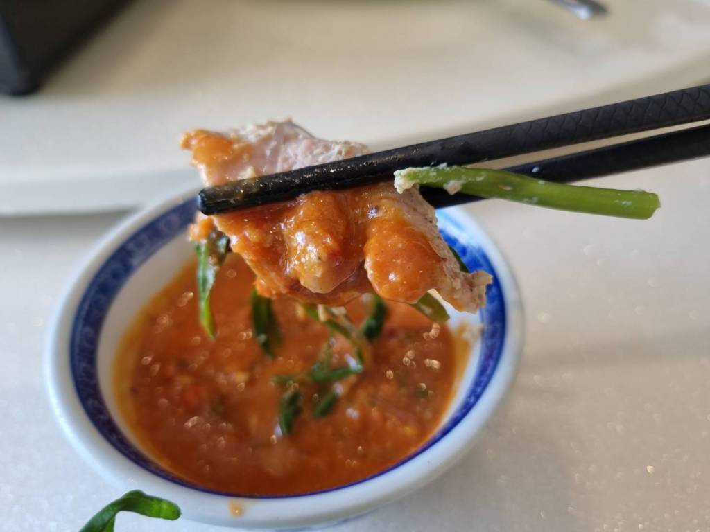 เลือกเฉพาะส่วนน้ำซุปใสราดลงไป ได้ความหอมหวานที่ลงตัวรสชาตกำลังดีไม่จัดจนเกินไปค่ะ