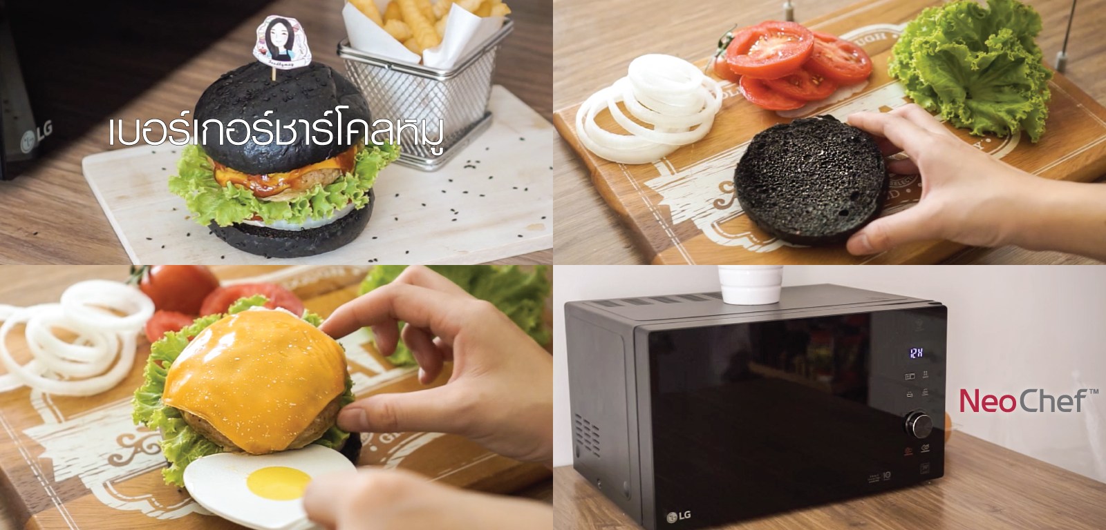 แอลจีนำเสนอสองเมนูสองสไตล์ “เบอร์เกอร์หมูขนมปังชาร์โคล” และ “หอยแมลงภู่นิวซีแลนด์อบชีส”ที่รังสรรค์จากการปรุงด้วยเตาอบไมโครเวฟ LG NeoChef™ นวัตกรรมล่าสุดจากแอลจีที่มาพร้อมกับนิยาม “ที่สุดของการออกแบบอย่างมีระดับ” โดยสามารถอิ่มอร่อยกับทั้งสองเมนูเพียงไม่กี่นาที